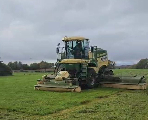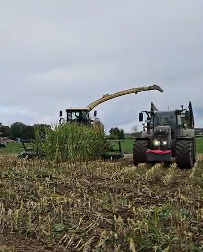 Das Holtseeer Ernte-Team von Dienstleister Blunk schließt die Ernte von Mais und Silphie in Schleswig-Holstein ab und startet mit Volldampf in die vierte Grasernte.