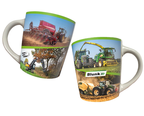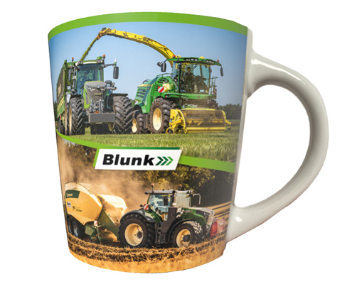 Aufdruck: rundum bedruckt mit Erntebildern vom Blunk-Team im Einsatz sowie Jogi-Zitat „immer ganz vorn“ und Blunk-Logo