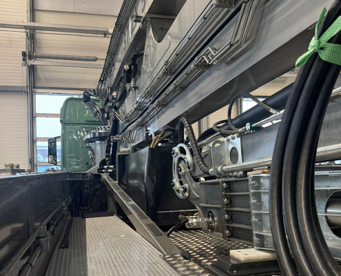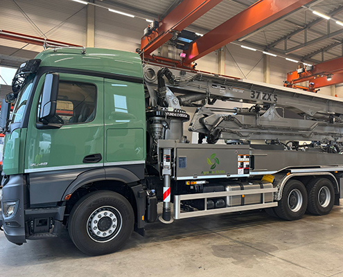 Allerdings sind die beiden neuen Aufbau-Rührer AgroMix 37ZX5 mit noch mehr Power ausgestattet und damit deutlich leistungsfähiger. Einer der beiden Rührer ist auf einen Mercedes-LKW Arcos 963-7-E montiert, der andere auf einem 4-Achs MAN-Fahrgestell.