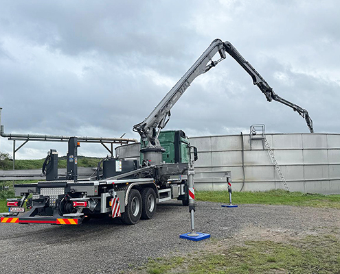 Mit unserem mobilen Blunk-Spezialrührern rühren wir Schwimmdecken sowie Schwimm- und Sinkschichten zu einer flüssigen, homogenen Masse auf. Unser extra langer, 38 Meter Auslegearm erreicht dabei auch tiefe Schichten in schwer zugänglichen Behältern.