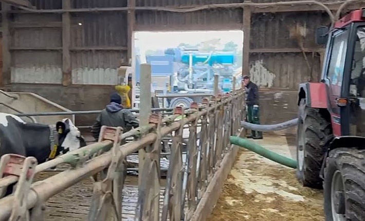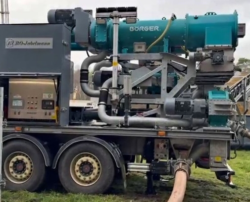 - Gülle vor Ort beim Kunden mit unserer mobilen Separationsanlage in flüssige und feste Phase separieren und