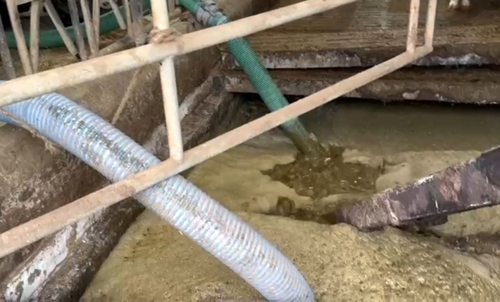 Vor Ort stellte beim Kunden das Vahldorfer Team fest, dass die Gülle größtenteils so dick war, dass sie sich nicht in den Separator pumpen ließ. Außerdem war das Gülle-Lager kaum zugänglich.