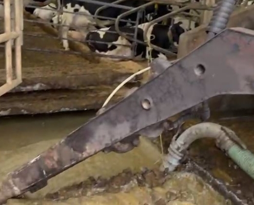 Helge Witt, Blunk-Fachberater und Projektleiter erklärt: „Der Gülle-Keller unter dem Stall war nicht richtig zugänglich, kontruktionsbedingt kamen wir da nicht mit dem Rührer an die dicke Gülle dran. Nach einigem Hin-und Herüberlegen schlugen wir dann vor, die Decke des Gülle-Kellers an einer Stelle gerade so weit zu öffnen, dass wir den Rührer-Kopf einsetzen könnten.“