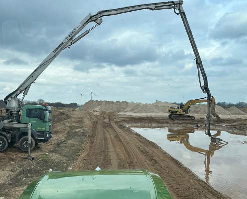 In der Industrie sind wir mit einer modernen Fahrzeugflotte für Schüttgut-Transporte, Umschlag und Be-/Entladung im Einsatz: MAN LKW, Bagger, Schlepper, Mulden – und bei Bedarf Rührer mit 38 Meter Rührarm.